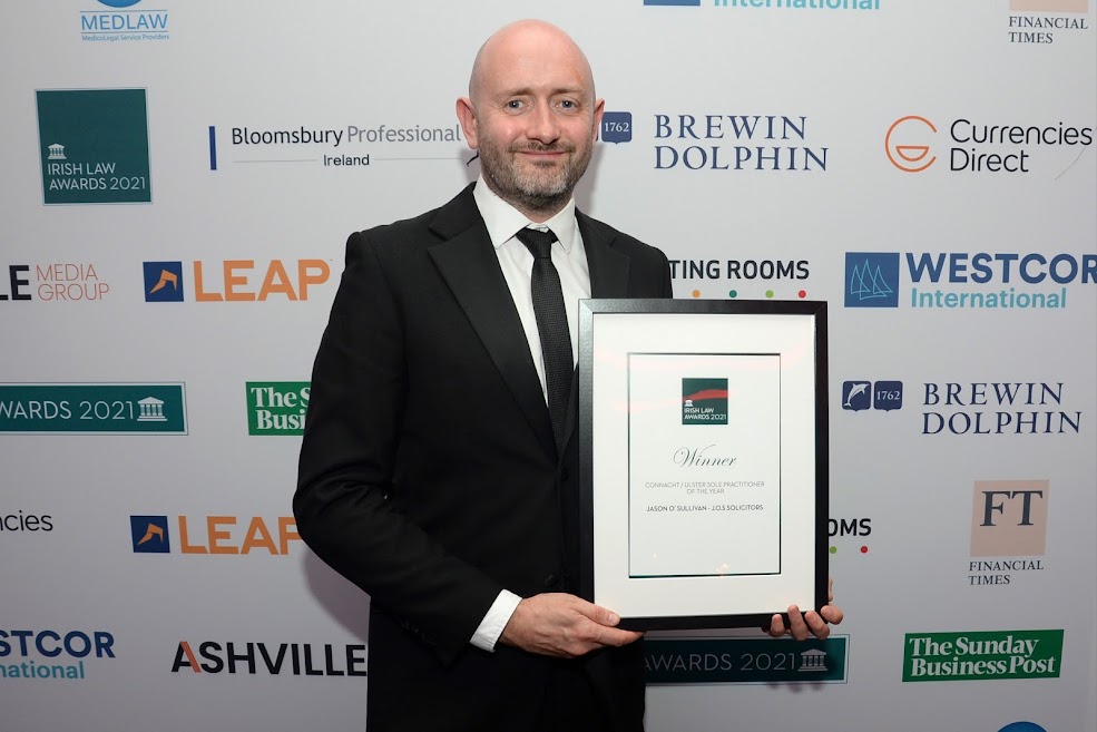 Jason was awarded “Connacht/Ulster Sole Practitioner of the Year” at the Irish Law Awards 2021 and was also previously awarded “Connacht/Ulster Sole Practitioner/Sole Principal of the Year” at the Clinch Wealth Management Irish Law Awards 2018.